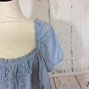 2/$30 ZARA Blue Eyelet Cropped Top Size Medium Short Peasant Crop Top Boho