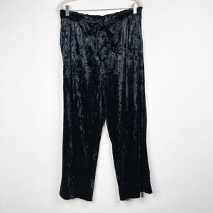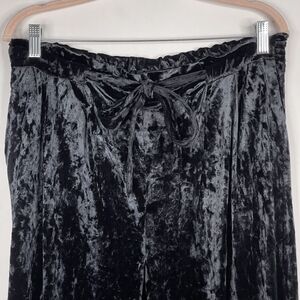 2/$30 ZARA Crushed Velvet High Rise Capri Pants Large Black Cinched Waist #7313