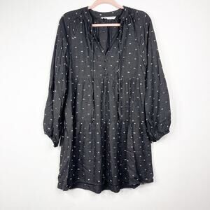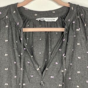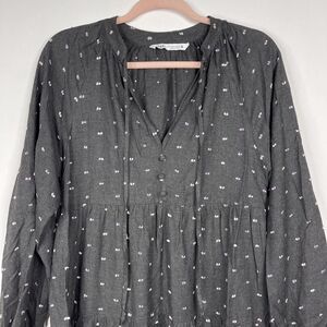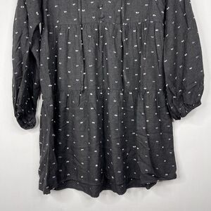 2/$30 ZARA Ditsy Embroidered Babydoll Popover Dress Small Gray Long Sleeve #7028