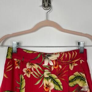2/$30 ZARA High Rise Short XS Red Hawaiian Tropical Floral Pockets Zip-Fly #5663