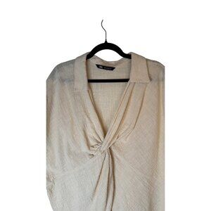 2/$30 ZARA Medium Beige Textured Knot Front Blouse Dolman Sleeves