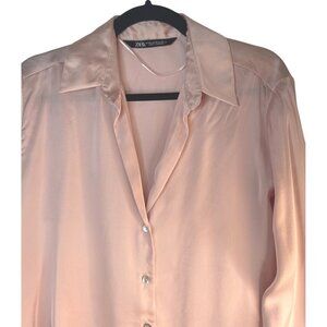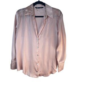 2/$30 ZARA Medium Silk Blouse Light Pink Long Sleeve Button-Down