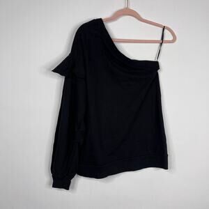 2/$30 ZARA One Shoulder Jumper Sweater Small Black Ruffle Balloon Sleeve #6152