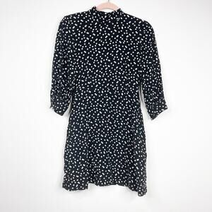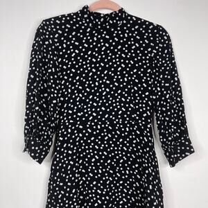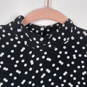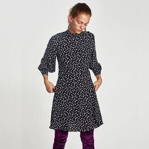2/$30 ZARA Polka Dot Skater Dress XS Black High Neck Long Balloon Sleeve #6189