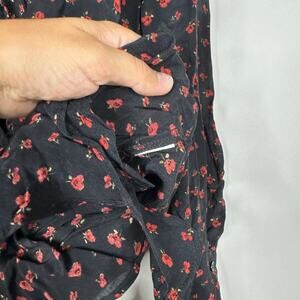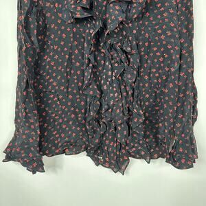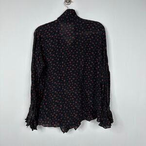 2/$30 ZARA Ruffle Button Down Blouse Rose Print Black Large #8185
