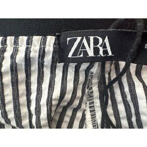 These versatile striped pants from Zara are tailored for a professional look. The cotton and polyester blend ensures comfort and durability, while the timeless black and white stripes offer a sophisticated appearance. Ideal for professional settings or casual outings, they provide a comfortable fit and a stylishly modern aesthetic.