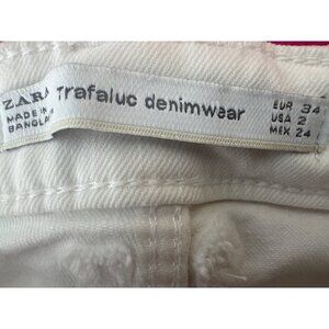These Zara Trafaluc jeans offer a trendy distressed look in a versatile white color. Crafted from cotton, they provide a stylish fit for casual wear.
