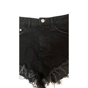 2/$30 ZARA Size 4 Black Distressed High-Waisted Denim Shorts Frayed Hem