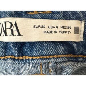These jeans offer a classic straight-leg fit, providing both comfort and style. Crafted from quality denim, they're ideal for everyday wear. Zara jeans, women's denim, blue jeans, straight leg, comfortable fit, casual wear, everyday jeans, size 4, cotton blend, front pockets, back pockets, button closure, zipper fly