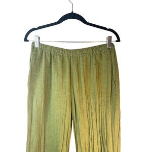 2/$30 ZARA Size Small Linen-Blend Crease Effect Pants Green Elastic Waist