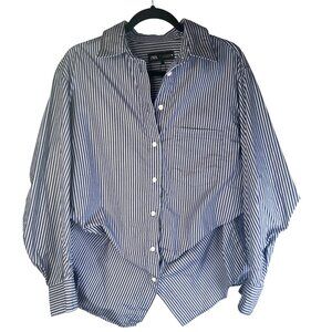 2/$30 ZARA Small Navy & White Striped Button-Up