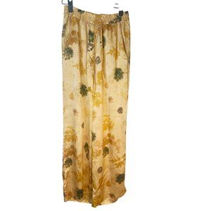 2/$30 ZARA Small Silk Drawstring Pants Gold Floral Print Elastic Waist