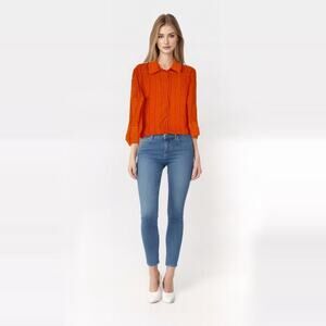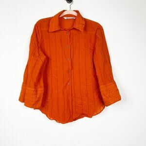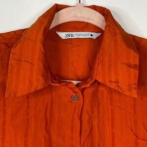 2/$30 ZARA Striped Button-Down Blouse Medium Red Round Hem Wide Sleeve #6514
