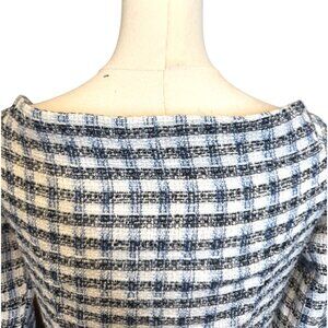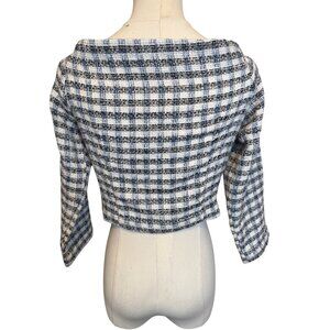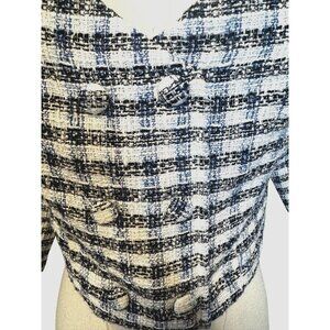 2/$30 ZARA Womens M Plaid Tweed Cropped Jacket Navy Blue/White