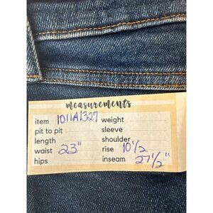 Waist = 23 inches, Rise = 10.5 inches, Inseam = 27.5 inches