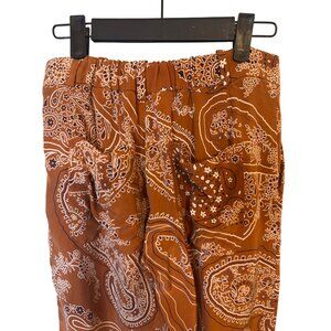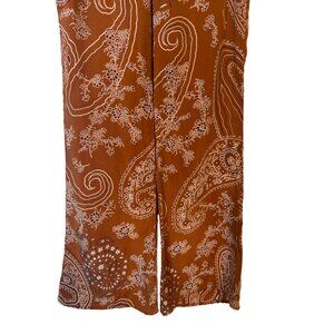 2/$30 ZARA XS Paisley Print Wide Leg Pants Rust/Brown Bohemian Style