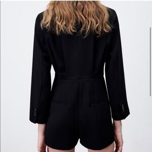 Zara black pleated long sleeve romper with a tailored, blazer-inspired silhouette.