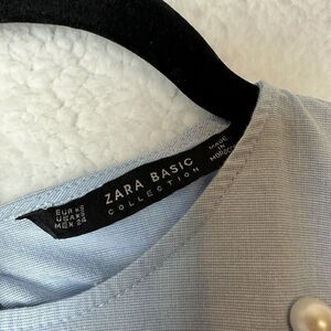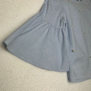 2/$30 Zara Chambray Oversized Top XS Bell Sleeve Pearls Quiet Luxury Clean Girl