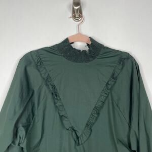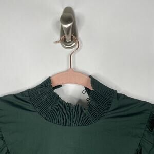 2/$30 Zara Poplin Shirt XS Ruffle Frills Bottle Balloon Sleeve Puff Green #1663