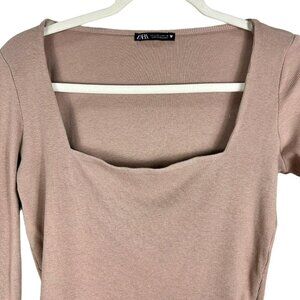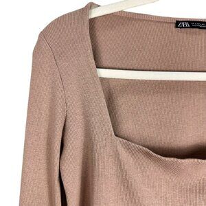 2/$30 Zara Tan Caramel Square Neckline Ribbed Crop Top Long Sleeves Size Large