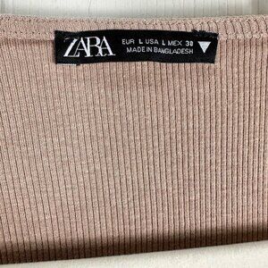 2/$30 Zara Tan Caramel Square Neckline Ribbed Crop Top Long Sleeves Size Large