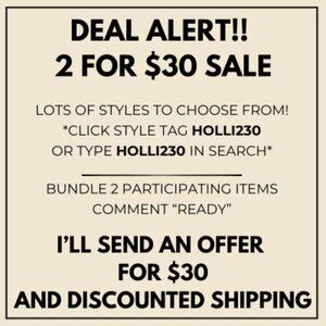 DEAL ALERT! Check out my 2 for $30 sale! Bundle this item with another 2/$30 item in my closet, comment "READY" and I'll send a $30 offer with discounted shipping! There are lots of items to choose from. To find eligible items, type HOLLI230 in the search bar on Poshmark or click the HOLLI230 style tag on this listing!