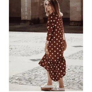 2/$30 Zara Trafaluc Large Polka Dot Long Brown/White Mutton Sleeve Dress