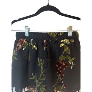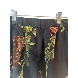 2/$30 Zara Woman Small Embroidered Mini Skirt Black Floral Velvet Overlay