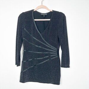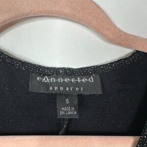 2/$30 connected apparel Black Metallic Faux Wrap Top Fitted Small #A0211 TRB2