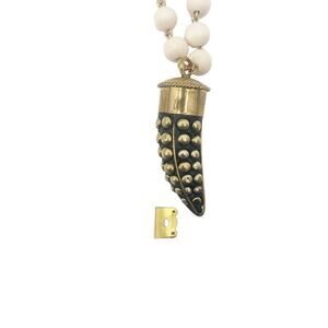 ALLEGRA FANJUL Necklace Beaded Gold White Tooth Warrior Horned