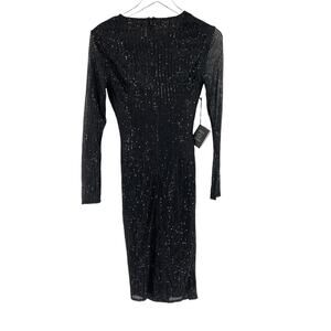2/$30 AREA STARS Black Sequin Dress Size S Deep V Neck Side Ruching Asymmetrical