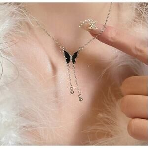 2/$30 Butterfly Tassel Necklace Silver Tone Classic Black Butterfly Simple