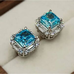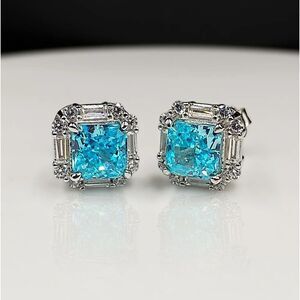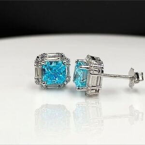 2.30CT Radiant Cut Crushed Ice Swiss Blue Topaz Stud Earrings in Sterling Silver