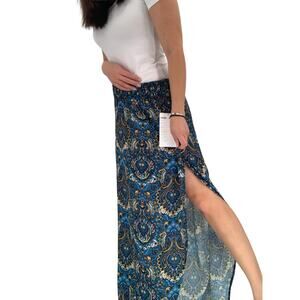 2/$30 FORTUNE Swimwear Pants Size M Blue Nelly Petal Wrap Pants Diamond Crepe