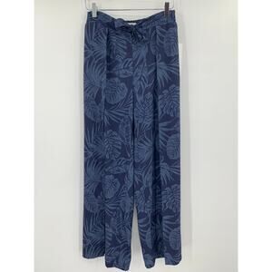 FORTUNE Swimwear Pants Size S Celine Wrapped Flare Pant Petal Pebble Stencil Leaf Navy Blue Palm Fronds