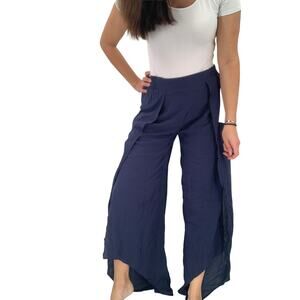 FORTUNE Swimwear Pants Size S Michelle Curved Hem Petal Pant Side Slit Navy Blue