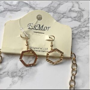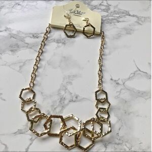 2/$30 Gold Geometric Statement Necklace Earrings Set