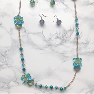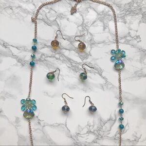 2/$30 Green Floral Gold chain Necklace with 3 pair of Earrings Set