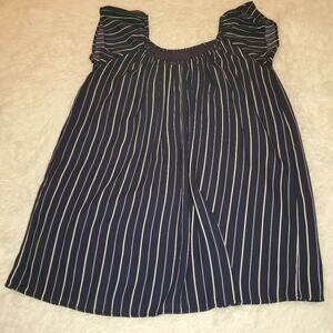 Excellent used condition size small Honey Punch navy blue with white vertical stripes mini dress with short sleeves and elastic neckline that could be adjusted for off-the-shoulder. Nautical, beachy look perfect for spring and summer, cruises, or warmer months.