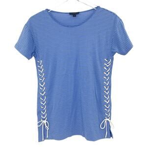 J CREW Top Size XS Blue White Stripe Bow Tie Lace Up Sides