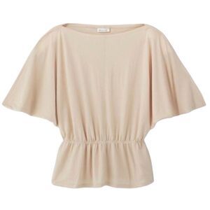 This T-Shirt is a perfect addition to your of-the-moment wardrobe. Boat neckline creates a lovely silhouette that's complemented by fluttery dolman sleeves, giving this short-sleeve tee a simple elegant look. soft, lightweight fabric 4 a luxurious look & feel, & an elastic at waistline defines the natural form while adding to the modern design.