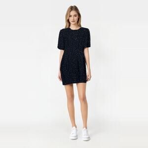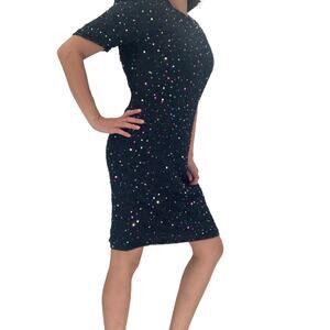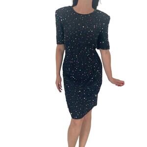 STENAY Silk Beaded Dress Size 6 / Modern S Colorful Rainbow Sequins Black Classic Back Zipper Back Cutout