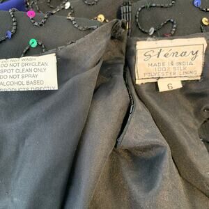 2/$30 STENAY Silk Beaded Dress Size 6 Modern S Colorful Rainbow Sequins Black