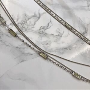 2/$30 Silver Crystal Layered Strand Necklace w matching dangle drop earring Set