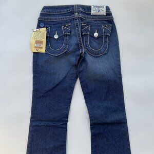 $231 True Religion Women’s Becky Heritage Jeans Slim Bootcut Dark Blue Size 25