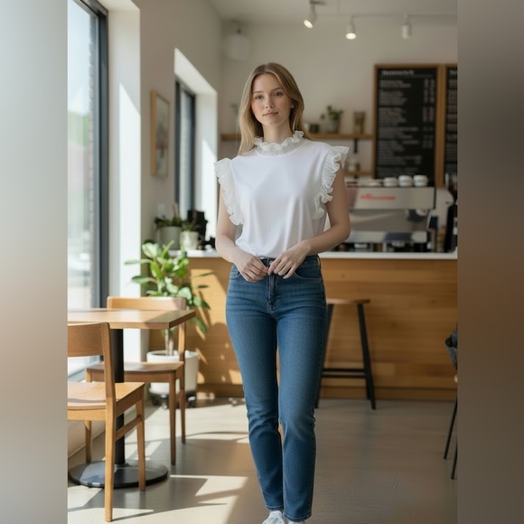 $234 SANDRO white Ruffle Top