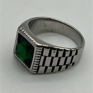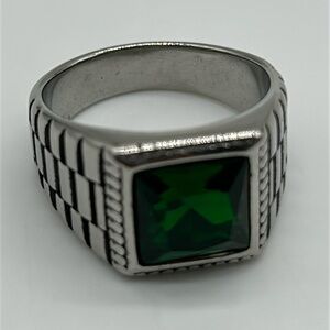 2342- Green Cubic Zirconia Handmade Men's Ring Size 12.5 NWT