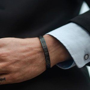 Brand New Stainless Steel Black Cuff Bracelets Bangles - Color Black 18k Plated Stainless Steel Roman Numeral Cuff Wristband Bangle Bracelet