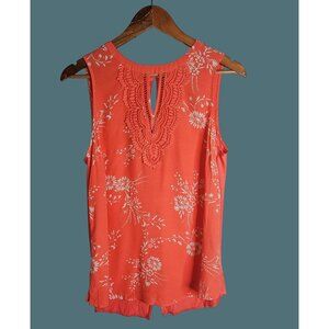 2/$35 Danielrainn Crochet Keyhole Floral Sleeveless Blouse Women M