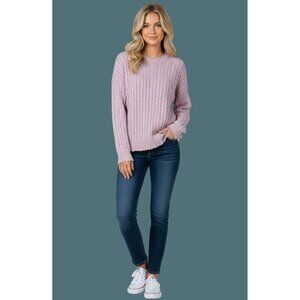 2/$35 Easel Cable Knit Distressed Pink Sweater - 100% Cotton - Women Size S